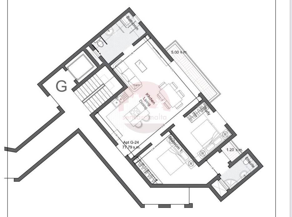 Birkirkara - 4th Floor 2 Bedroom Apartment Shell Form