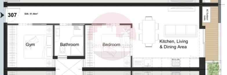 The layout consist of an open-plan kitchen/ living/ Dining area followed by good size front balcony, main bedroom, main bathroom and a study room.