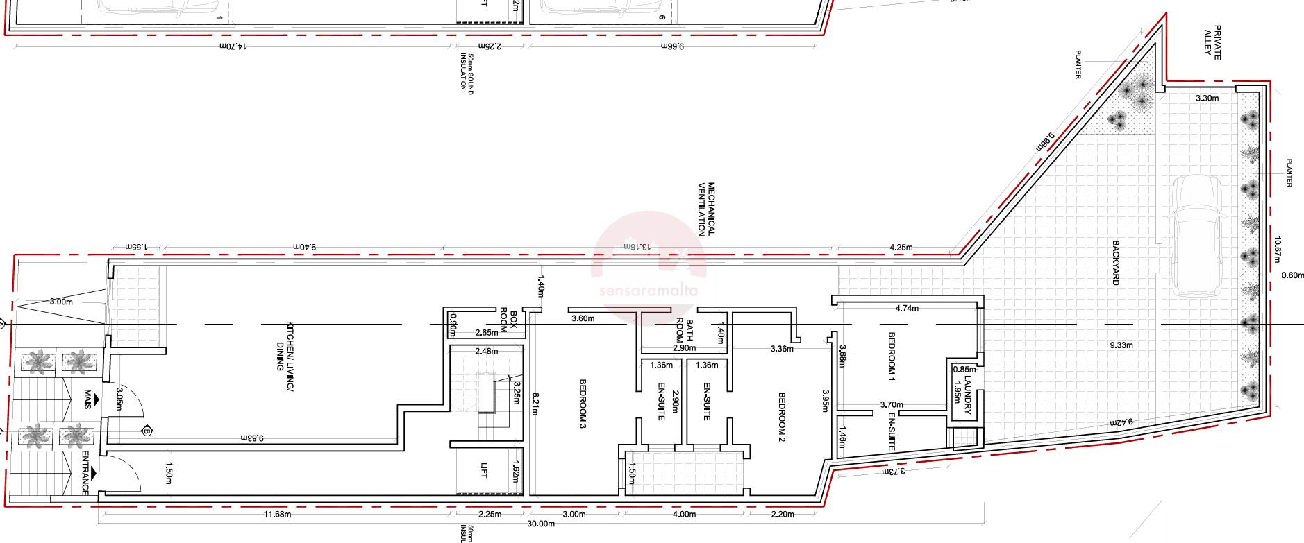 This comfortable layout consist in a front open plan upon entrance overlooking front terrace, master bathroom, 3 double bedrooms of which all bedrooms are served with ensuit and a back yard, interconnected with the back yard a 2 car street level garage is included with this maisonette.