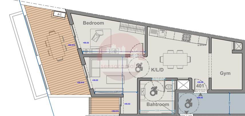 This spacious forth-floor penthouse in Zejtun presents an accommodation which includes an open plan kitchen/dining/living with a well-sized front terrace, one double bedroom, a gym and a main bathroom.