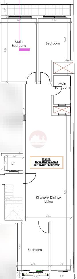 A second floor apartment consisting of an open plan kitchen/living/dining overlooking a front balcony, first bedroom, main bathroom, main bedroom with balcony and the last bedroom with access to the back balcony as well.