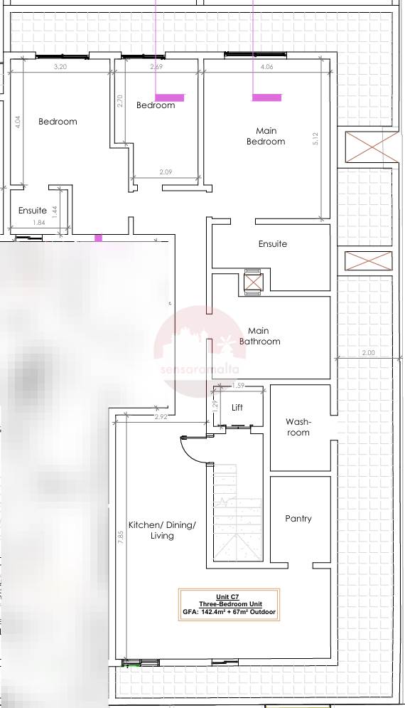 Fgura - Squarish 3 Bedroom Apartment - On Plan