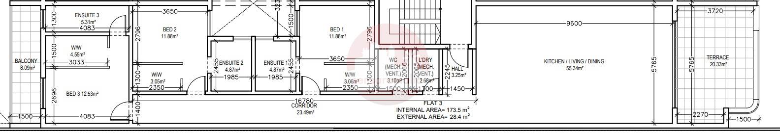 Situated in Mosta in a block of only 10 units, larger than usual of circa 202sqm, three-bedroom second floor apartment.