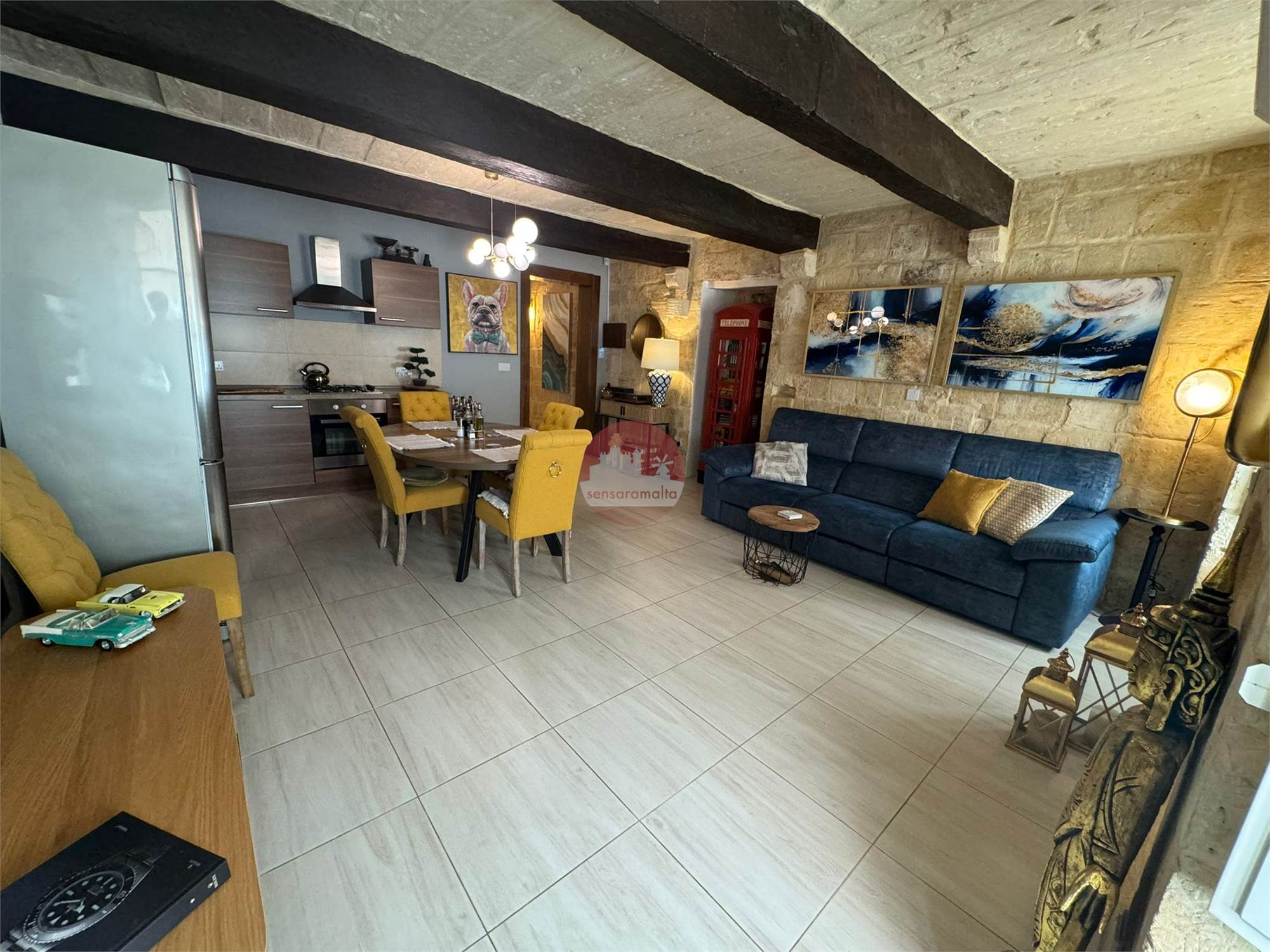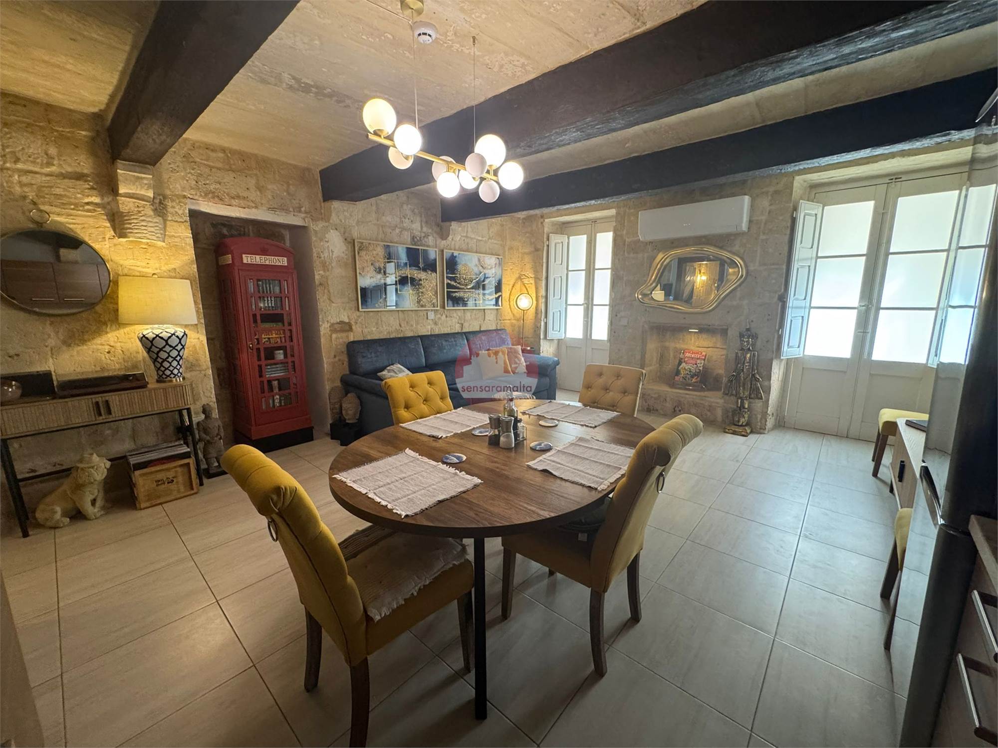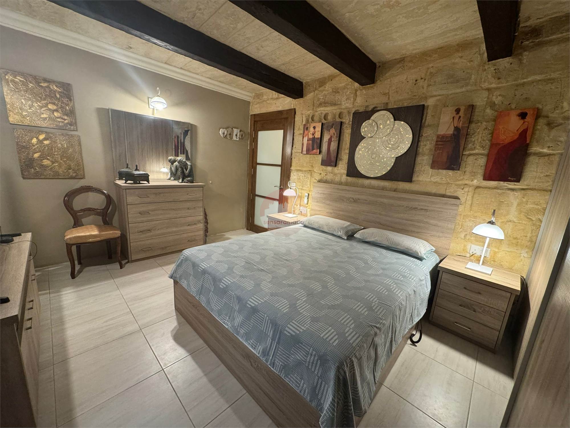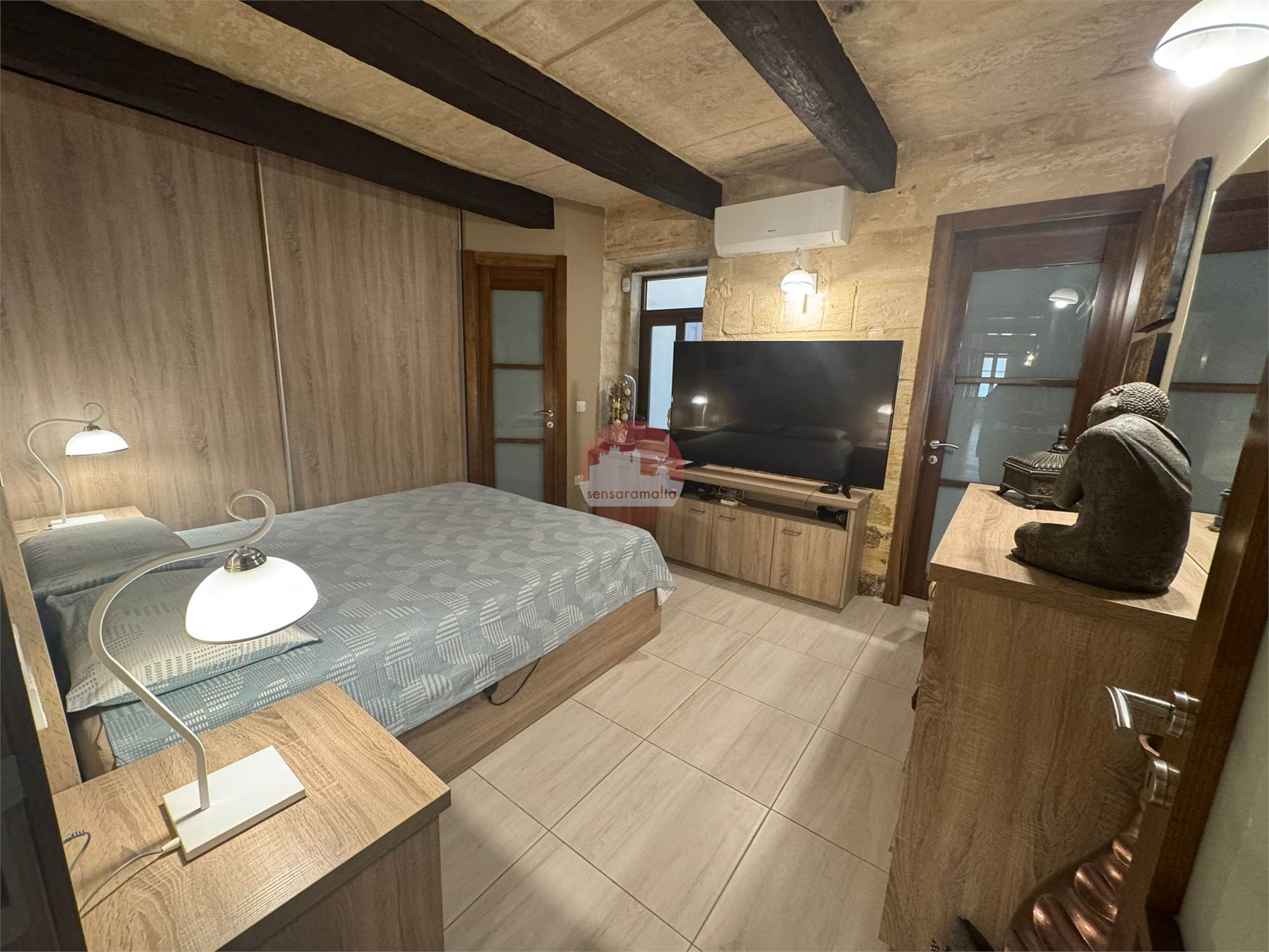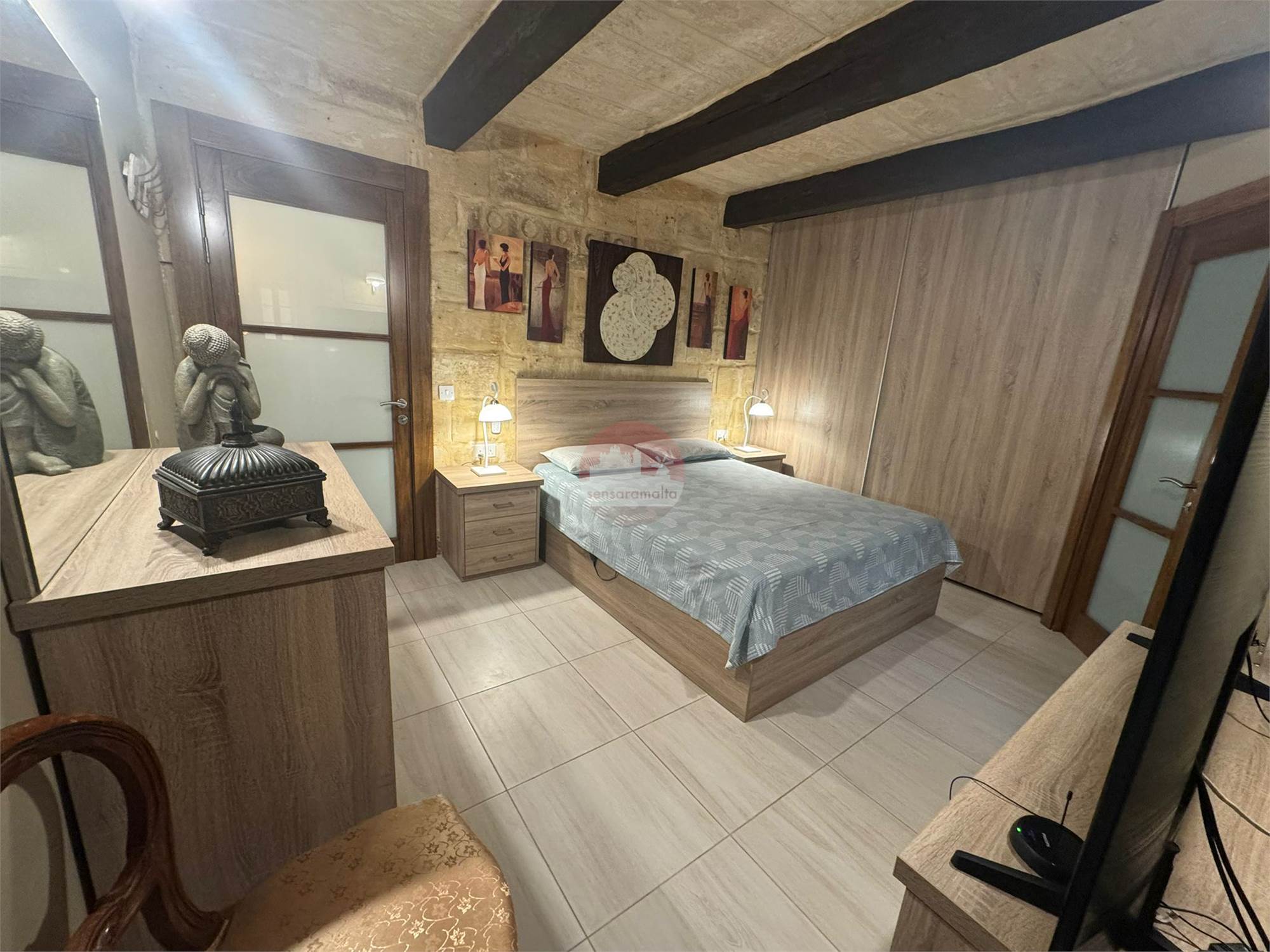 •Authentic Maltese Charm: Beautiful stone slabs, traditional wooden beams, hand-crafted wall cupboards, and authentic wooden apertures. The apartment also boasts solid wood doors locally made from high-quality materials, enhancing its traditional elegance.