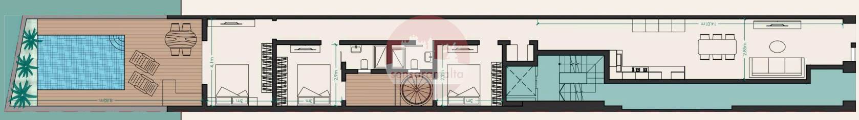 Larger than usual circa 170sqm, Three-bedroom ground floor maisonette in Mosta, currently available on plan.