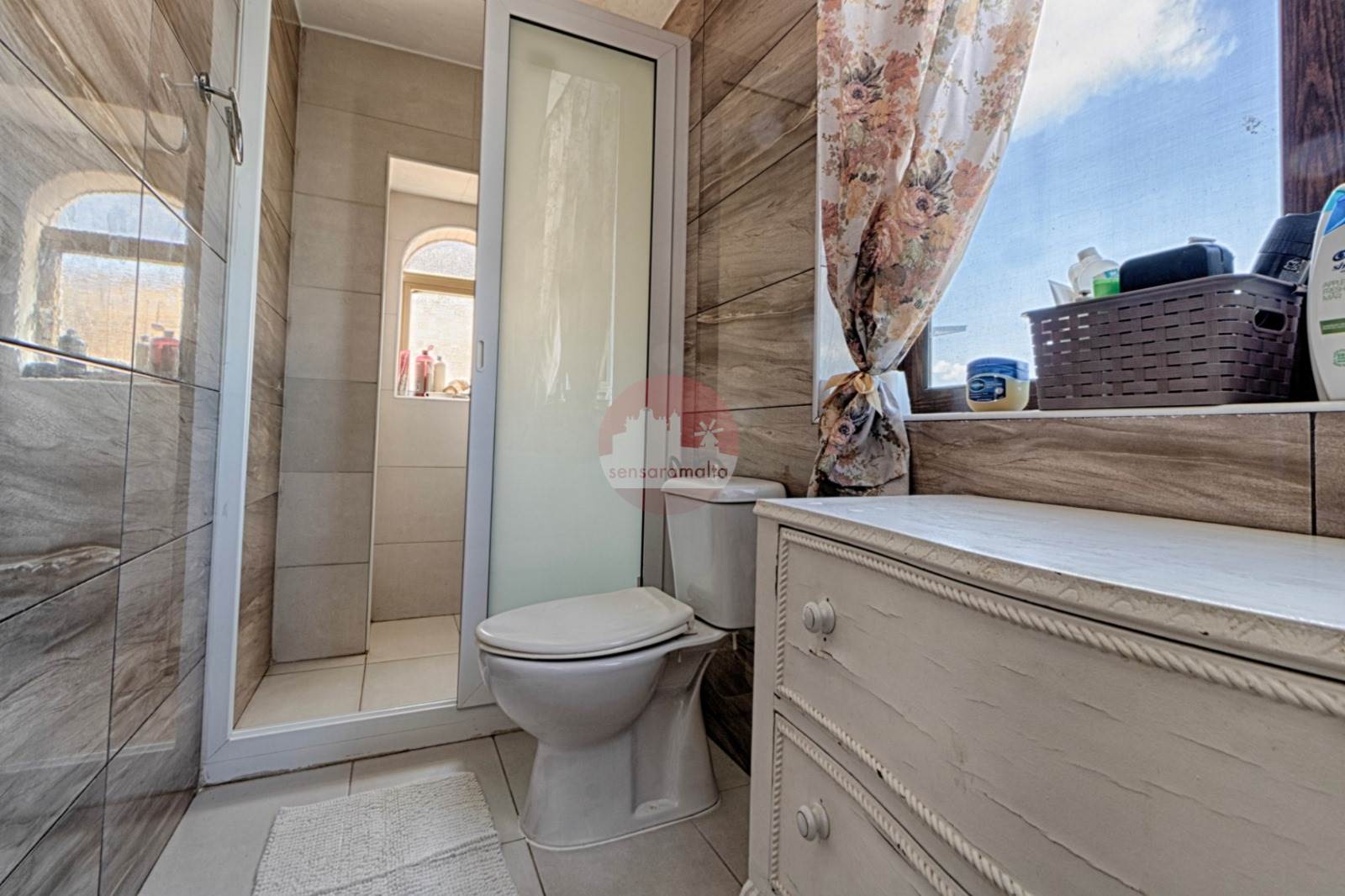 St. Paul's Bay - Discover a rare gem in St. Paul’s Bay, enjoying distant panoramic views of St Paul's islands — a charming double-fronted farmhouse and hamlet that beautifully blends historic character with modern comforts. Built around 1920, this lovely home is situated on a private road, providing tranquility and privacy, and is built on a generous plot measuring approximately 16.52 meters by 19.72 meters, app 325sqm. The house boasts approximately 50 square meters of bright, welcoming living space, featuring high ceilings and plenty of natural light. The spacious kitchen and dining area of about 27 square meters is perfect for family gatherings or entertaining friends, while the four generous bedrooms, each around 25 square meters and all with their own en-suites, provide ample comfort and privacy. Outside, the property offers a delightful balance of internal and external space. A landscaped garden of approximately 100 square meters, a cozy backyard of 31 square meters, and a sparkling 15-square-meter pool create an inviting outdoor oasis, with a total external area of around 200 square meters. There is also the wonderful possibility of making a separate use of adjacent semi-detached dwelling, which is included part and parcel with the property. This features a private entrance, an open plan kitchen, living and dining area, a bedroom, and a study, all within about 70 square meters, with its own airspace, which can be extended to an additional floor for extra rooms. The property includes a spacious street-level garage that comfortably fits three cars, with permit approval already in hand for an extension if desired, offering even more potential for customization. It comes finished and equipped, featuring 26 solar panels and a robust 3-phase system, making it both energy-efficient and sustainable. Whether you're looking for a warm family home surrounded by tranquility or an inviting guesthouse to share with visitors, this property offers both privacy and versatility. It’s a perfect retreat that combines historic charm with modern convenience. Contact us today to arrange a viewing and see for yourself the exceptional lifestyle this unique farmhouse has to offer.