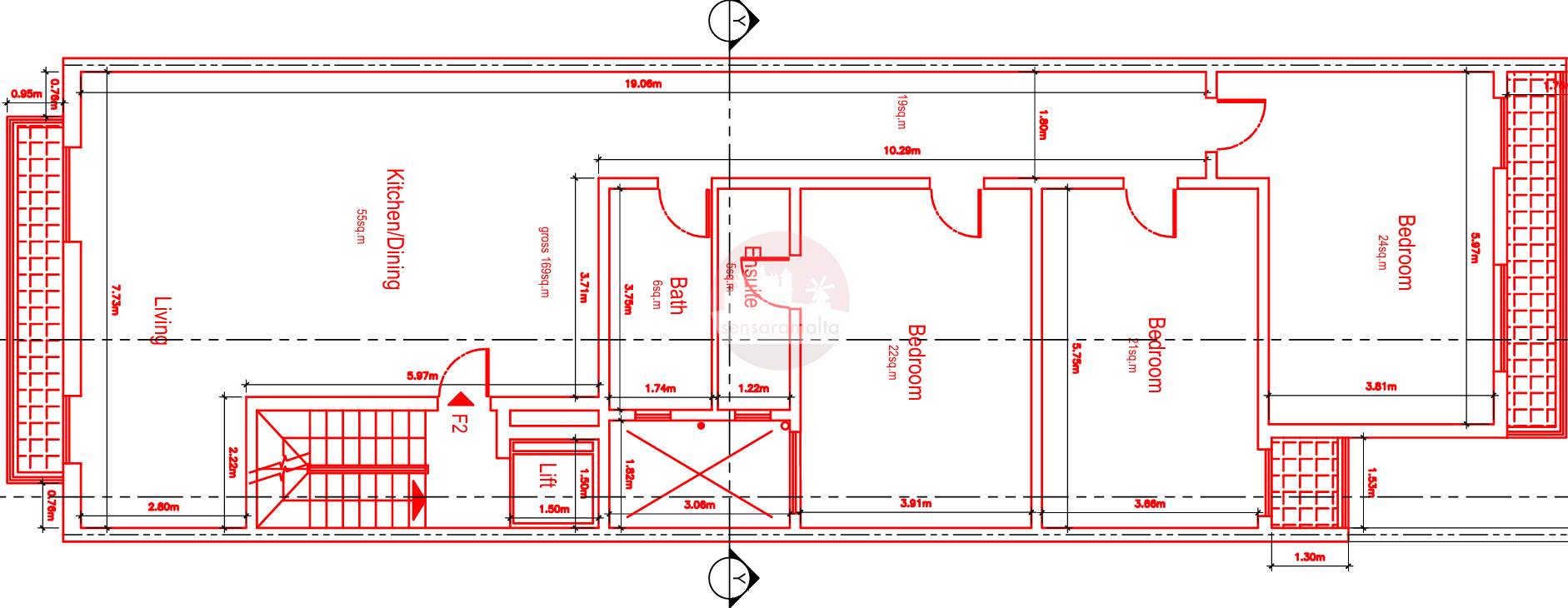 Fgura 169sqm 2nd floor 3 bedroom finished apartment On Plan