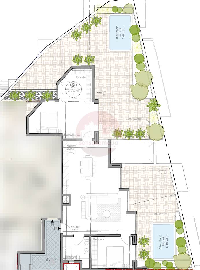 Featuring a spectacular open-plan layout, a main bathroom, a large front terrace with private pool and two double bedrooms main with en-suite and having access to a separate front terrace.