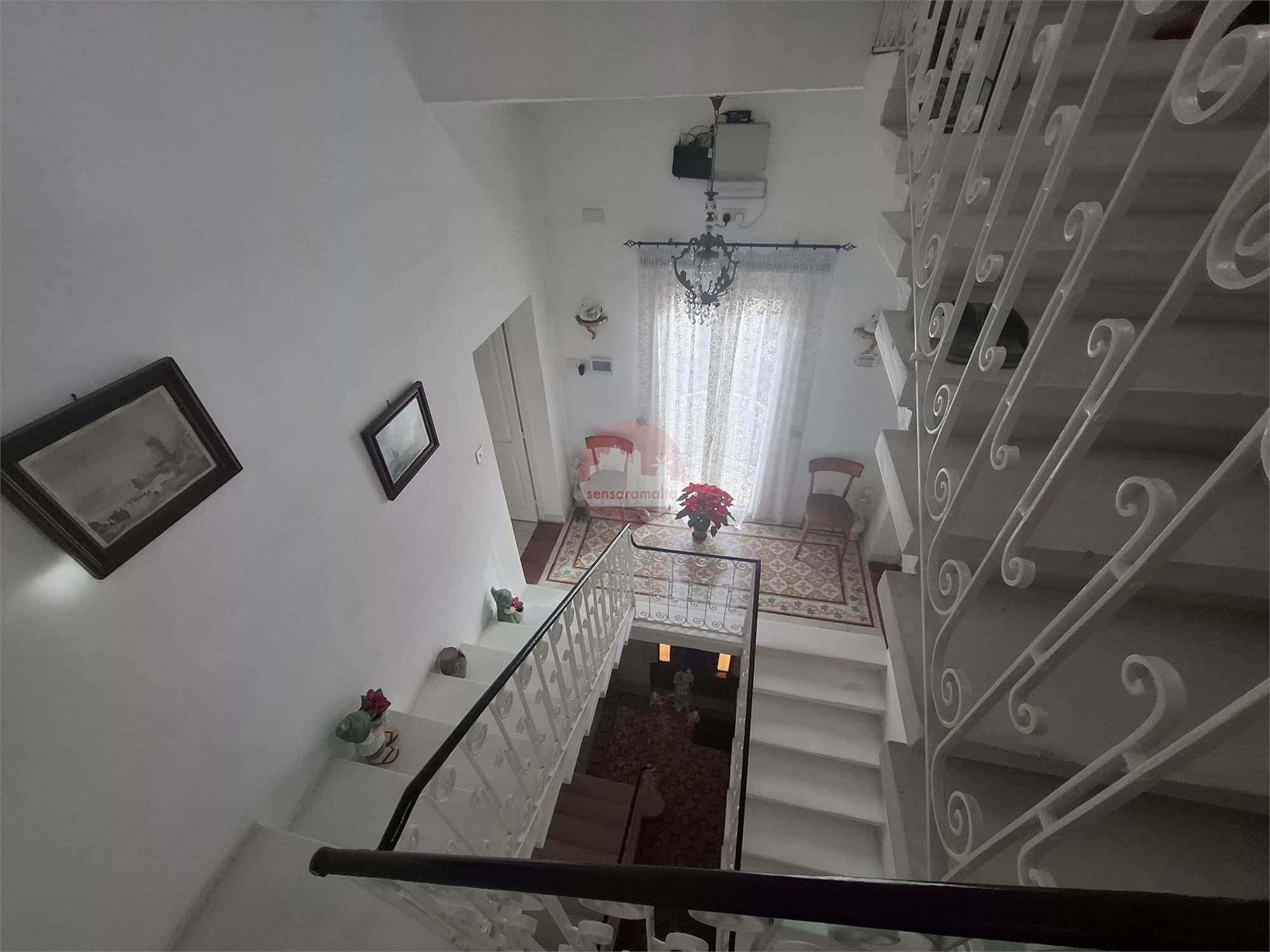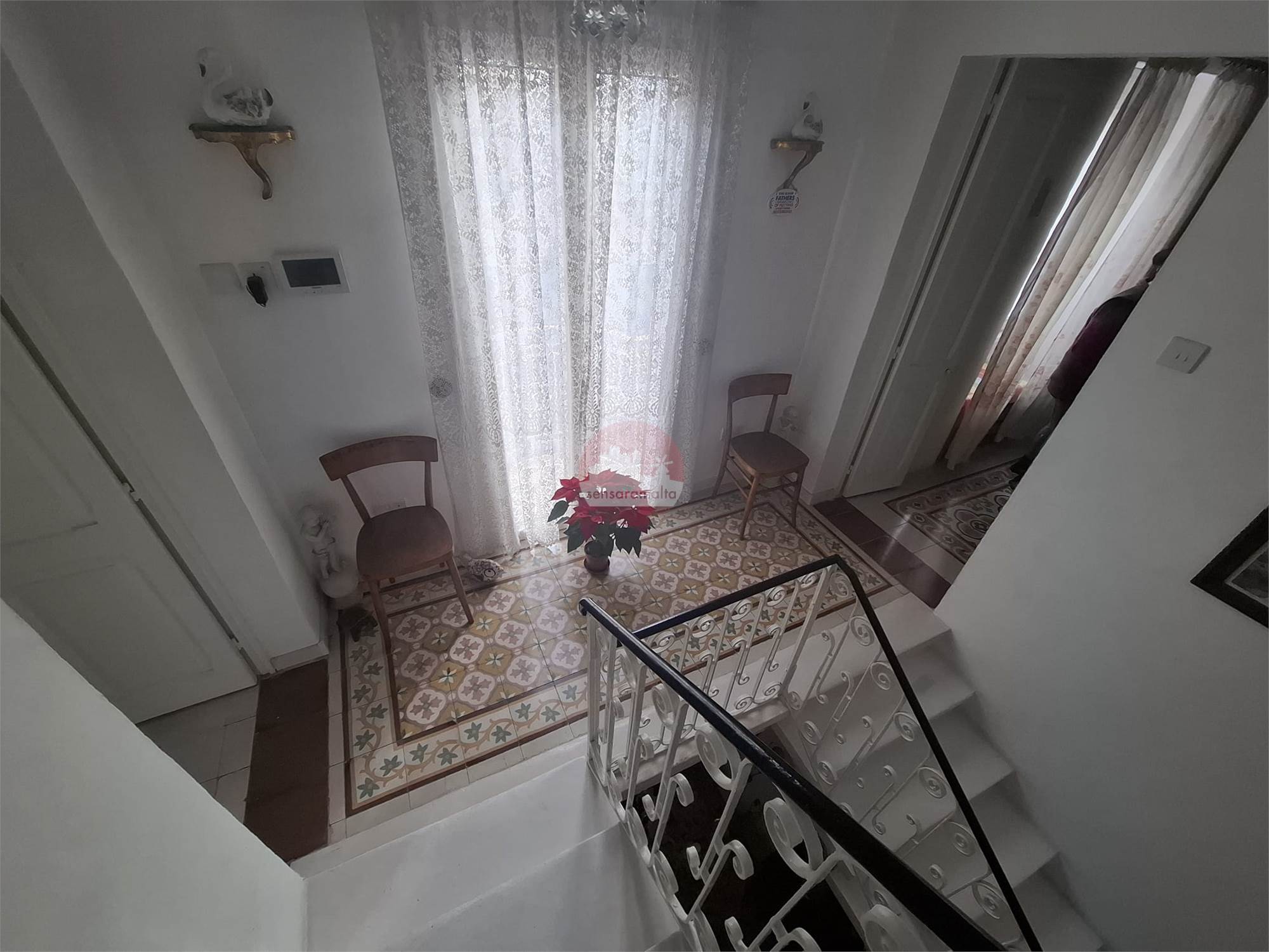 The property welcomes you with an entrance hallway featuring a traditional stone staircase, leading to a kitchen, spacious bathrooms, and an internal yard that provides natural light.