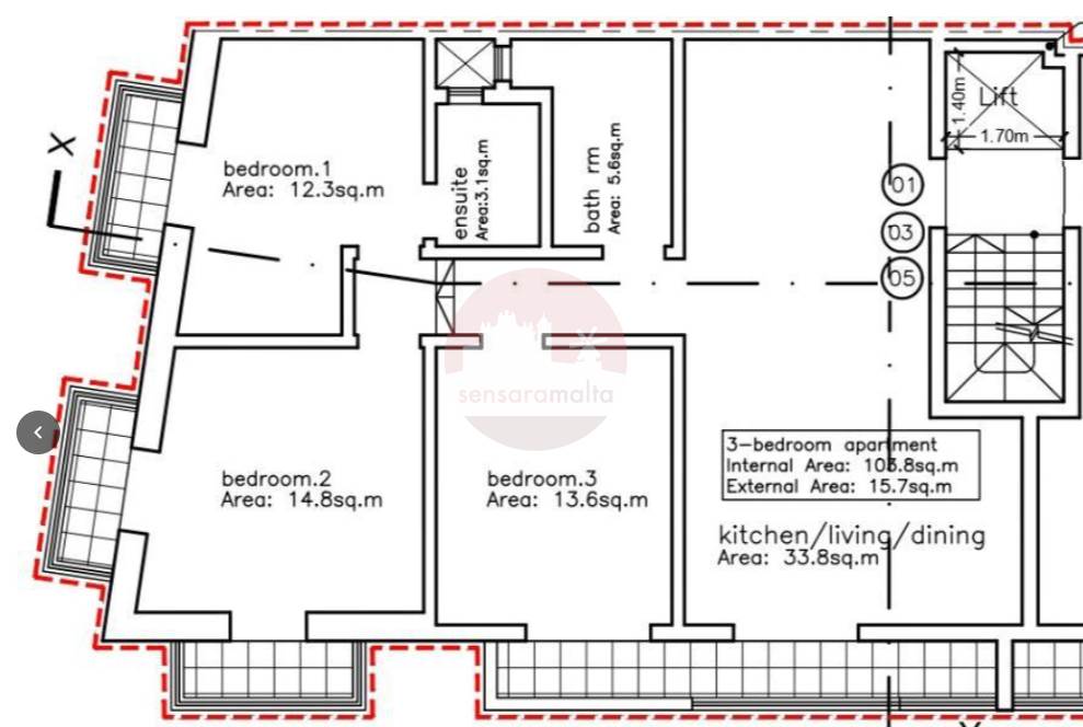 Mosta - 3 Bedroom Finished First Floor Apartment On Plan