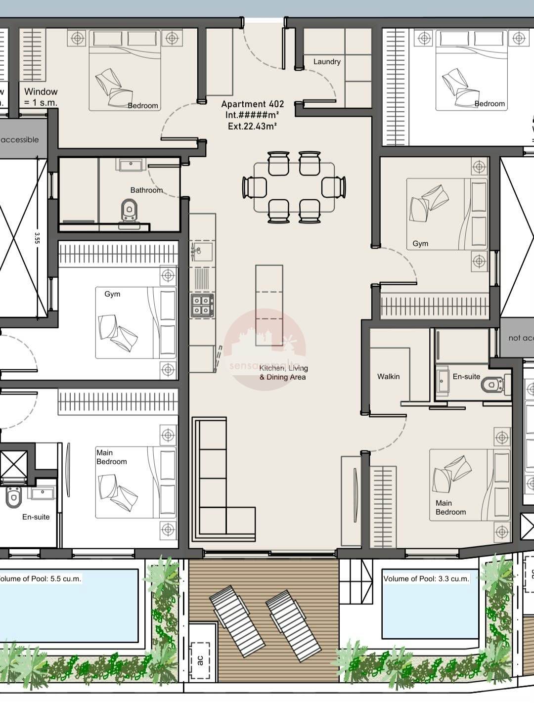 This Penthouse is situated on the 4th floor and consist of 2 double bedrooms main with an en-suite and a walk in , main bathroom a study room, laundry room and an open-plan kitchen/living/dining at the back of the property followed by a good sized front terrace with pool