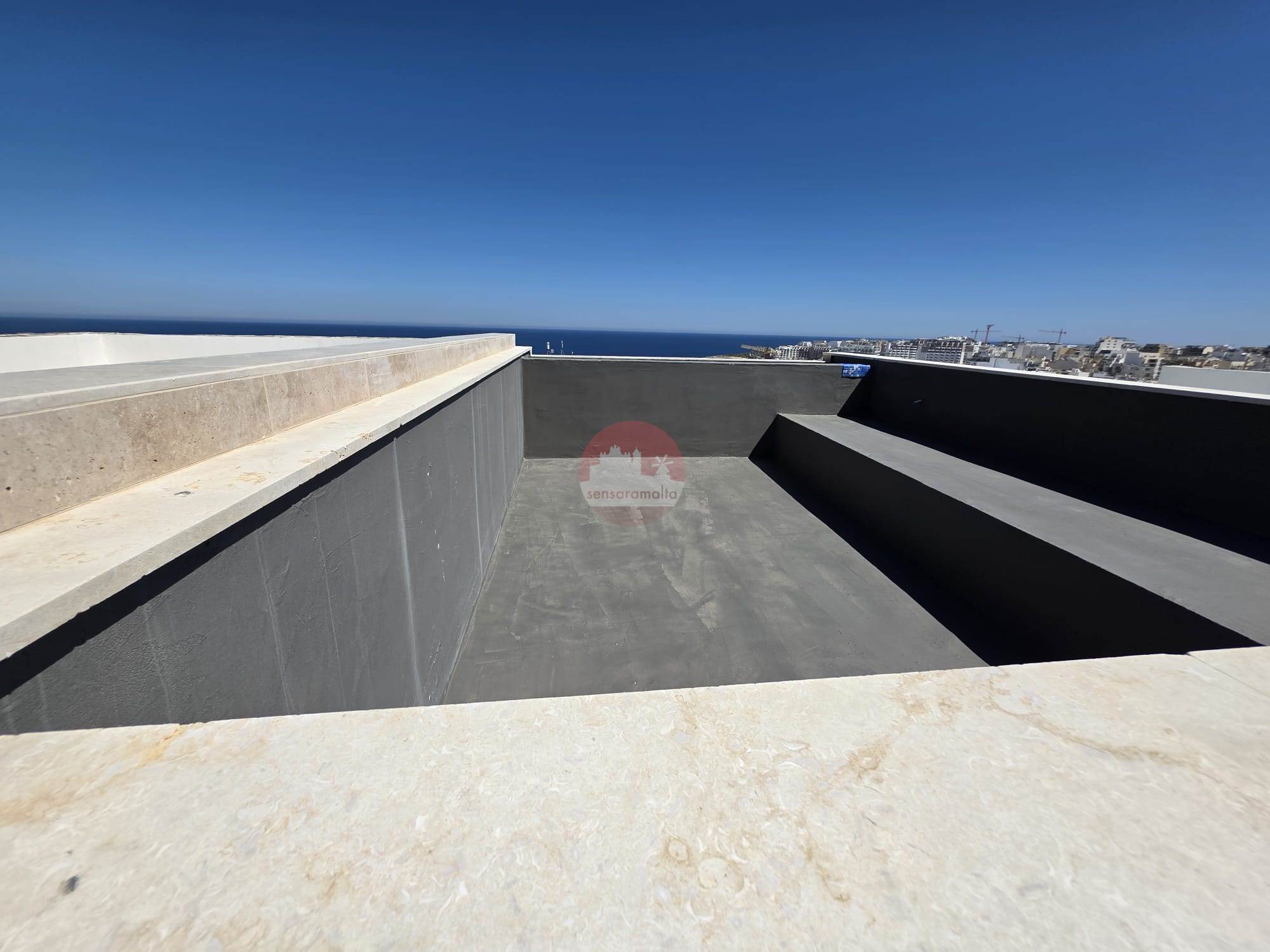 St Paul’s Bay – 3 Bedroom Sixth Floor Ready-Built Penthouse with Full Roof, Pool & Sea Views