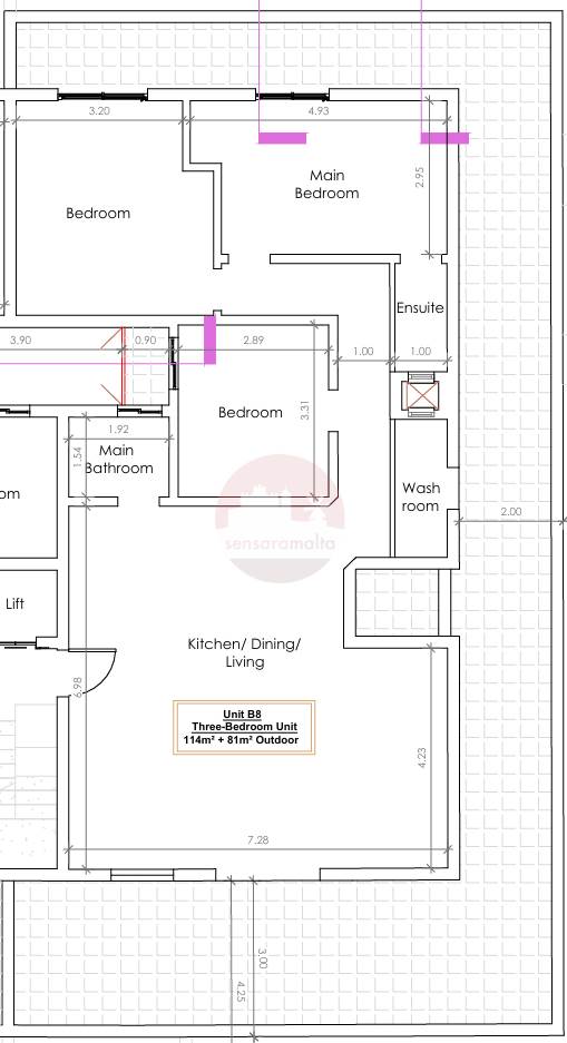 Paola - Larger than usual corner penthouse in shell form with 81sqm of outdoor space