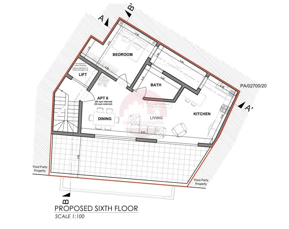 Located on the sixth floor, one-bedroom finished penthouse in Pieta, currently under construction.