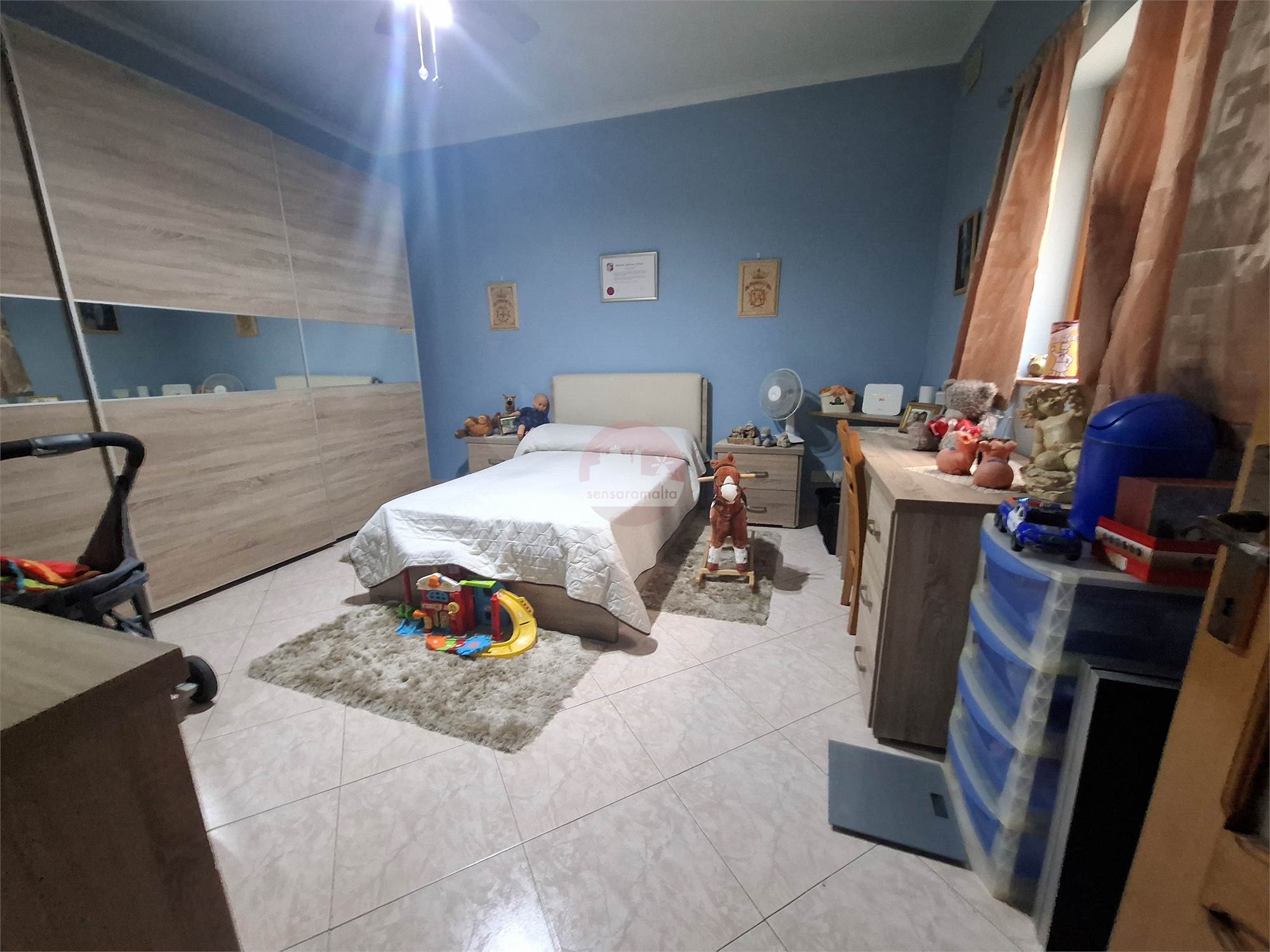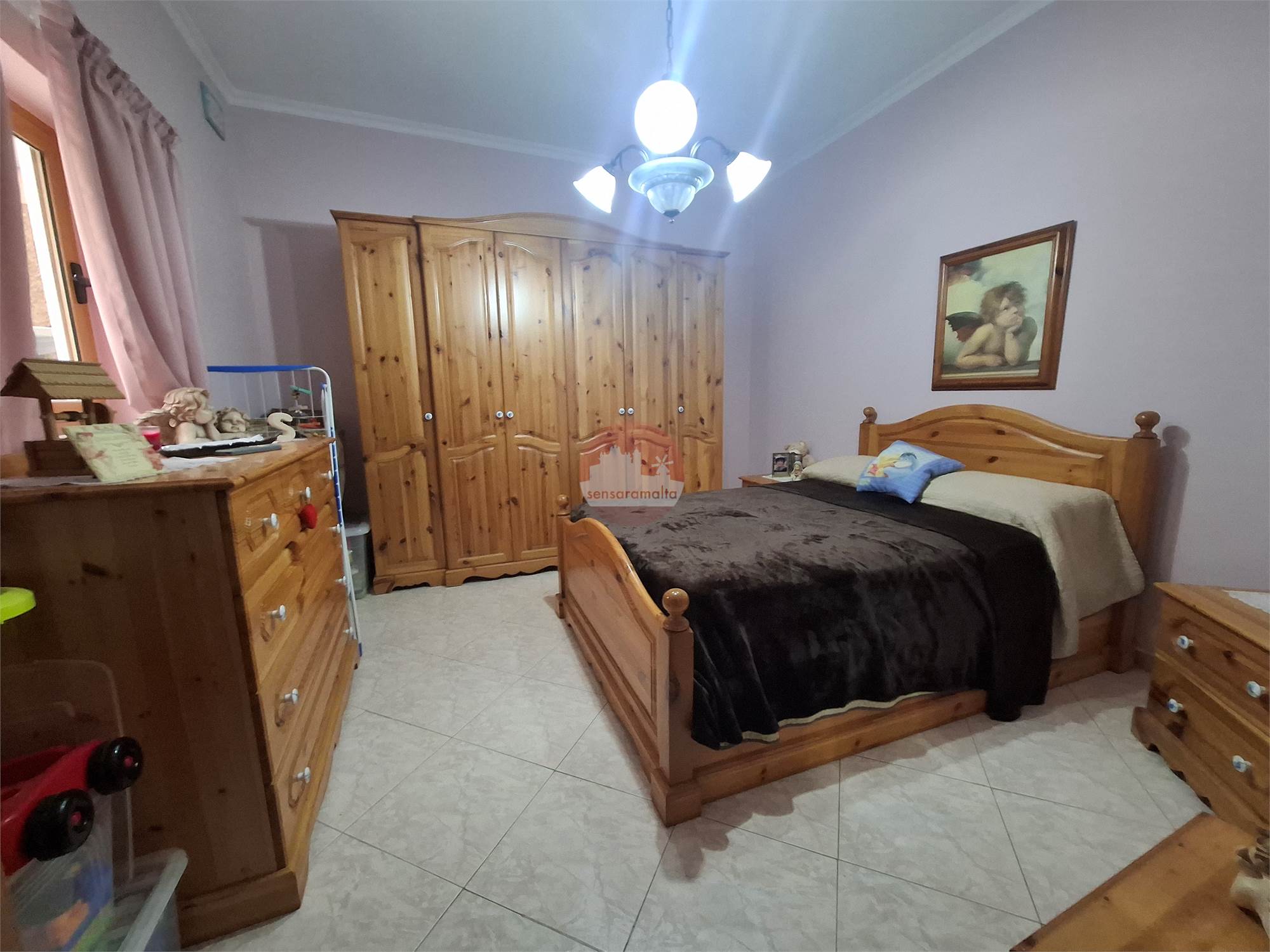 In Zabbar comes a well-kept first floor, three-bedroom furnished Maisonette enjoying a semi basement garage with access from the front of the maisonette and from the back of the property.