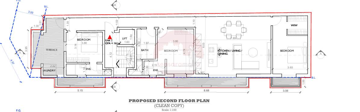 Under Construction comes this larger than usual, 160sqm, corner 3 bedroom apartment, forming part of a small block of just 4 units, situated on the second floor and served with lift from ground floor level.