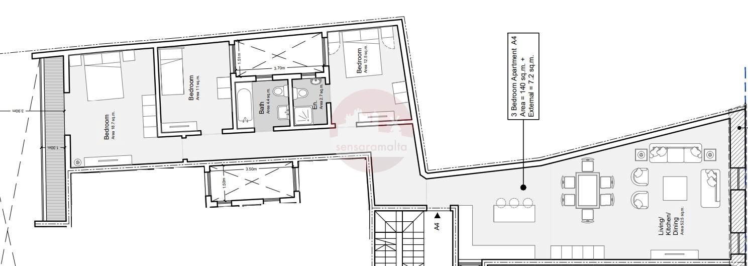 Mosta - 3 Bedroom Finished Apartment On Plan
