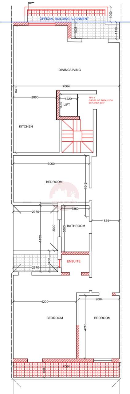 In Fgura and in a block of only four units comes a third floor 157sqm three bedroom apartment being offered in shel form yet with common parts and lift complete.