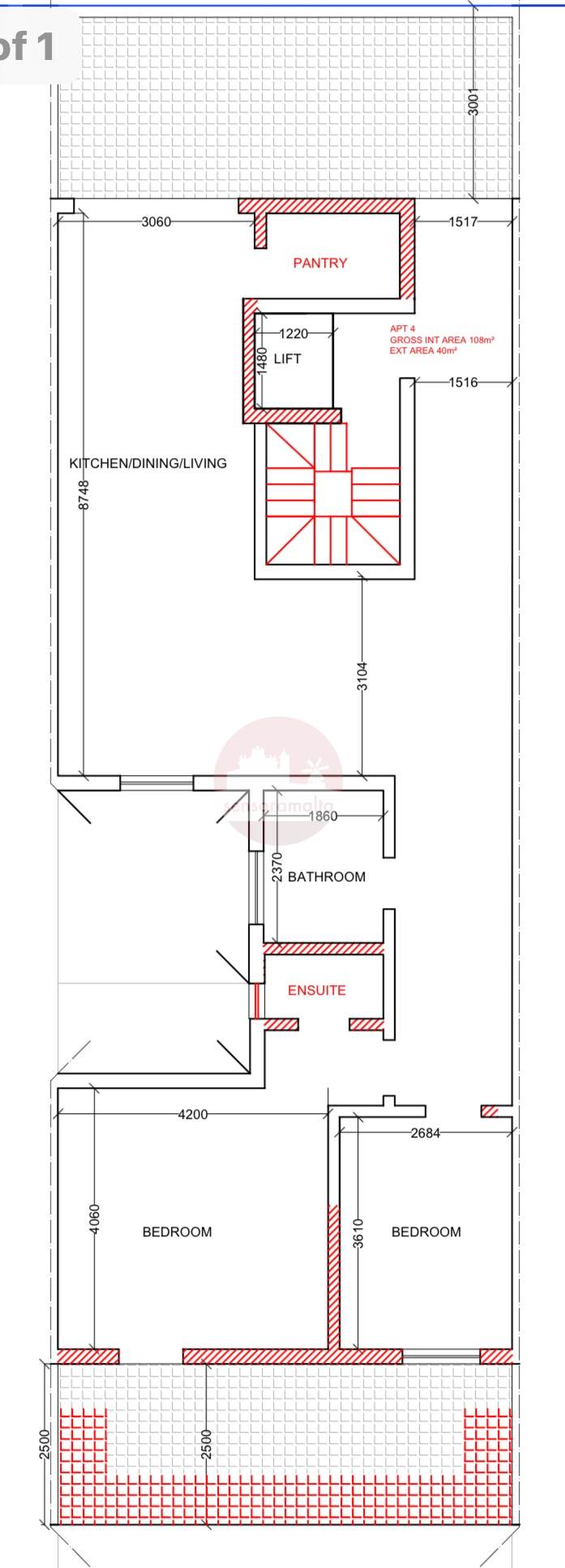 In Fgura comes a two-bedroom penthouse being offered in shell form yet with common parts and lift complete.