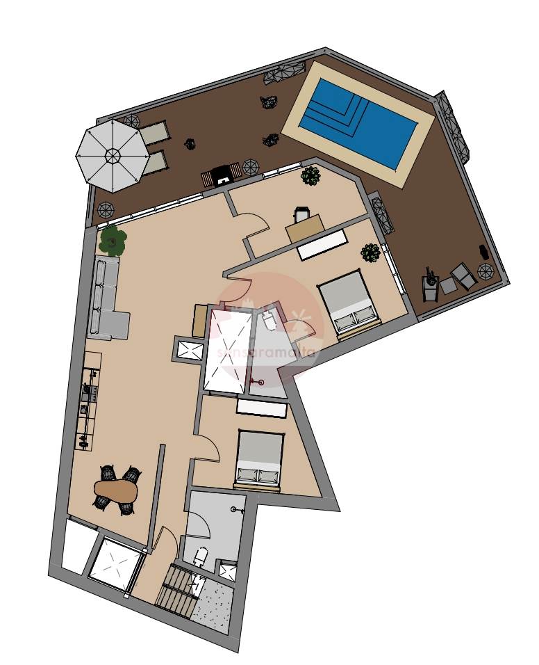 Mgarr- 200sqm 3 Double Bedroom Penthouse + Pool